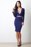 A crepe texture pencil skirt with an elastic waistband and midi length hem. Accessories sold separately. Made in U.S.A. 95% Polyester, 5% Spandex.