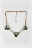 This fashionable necklace features a triple colorblock pendants with gold frame, square link chain, and finished with an adjustable lobster clasp closure.