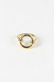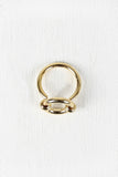 This cute ring features a cut out circle design with a high polish metal band. Non-adjustable.