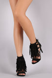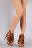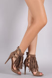 Wild Diva Lounge Buckled Suede Fringe Stiletto Heel