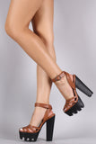 Wild Diva Lounge Strappy Ankle Buckle Lug Sole Platform Heel