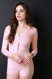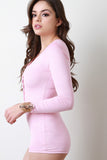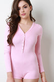 Vegan Suede V-Neck Long Sleeves Romper