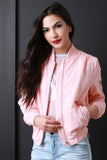 This bomber style  jacket  features rib knit trim, zip-up front, zipper accent at left sleeve. two pockets, and finished with lining. Accessories sold separately. Outshell 100% Polyester. Lining: 100% Polyester.