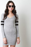 Melange Fleece Striped Sleeve Mini Dress