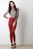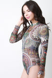 Graphic Print Mock Neck Mesh Bodysuit
