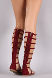 Suede Elasticized Strappy Center Ornament Gladiator Flat Sandal