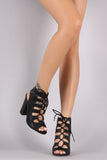Bamboo Corset Lace-Up Chunky Stacked Heel