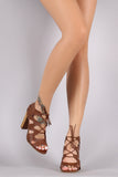 Bamboo Caged Cutout Lace Up Chunky Faux Wooden Heel