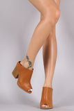 Qupid Peep Toe Slip On Mule Chunky Heel