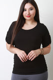 Round Neck Pocket Tab Sleeve Side Cinched Top