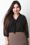Floral Lace Quarter Sleeves Tie Neck Chiffon Blouse