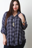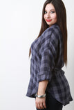 Plaid Pattern Quarter Sleeves Button Up Shirt Top