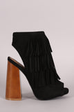Qupid Suede Fringe Peep Toe Mule Chunky Heel