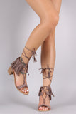 Qupid Suede Fringe Cuff Tassel Lace Up Chunky Heel