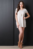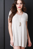 A relaxed-fit trapeze dress featuring ribbed jersey knit, round neckline, and short sleeves. Finished with a single breast pocket and unfinished hemline. Accessories sold separately. Made in USA. 95% Rayon, 5% Spandex.