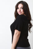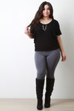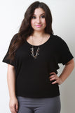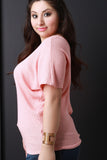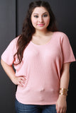 This plus size waffle knit top features a scooped round neckline, with dolman short sleeves. Accessories sold separately. Made in U.S.A. 97% Rayon, 3% Spandex.