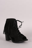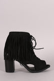 Suede Fringe Lace Up Chunky Heeled Ankle Boots