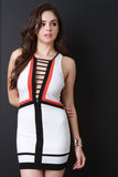 Tri-Tone Caged Front Sleeveless Bodycon Dress
