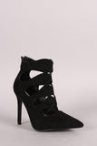Vegan Suede Cut Out Pointy Toe Stiletto Heels