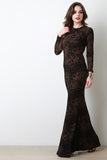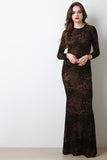 Semi-Sheer Floral Knit Long Sleeve Maxi Dress