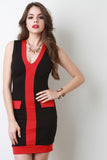 Colorblock V-Neck Sleeveless Sheath Dress