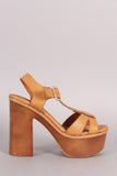 Qupid T-Strap Chunky Faux Wooden Platform Heel