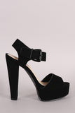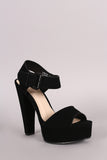 Bamboo Nubuck Buckled Ankle Strap Chunky Platform Heel