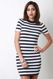 Striped Mock Neck Short Sleeve Bodycon Mini Dress
