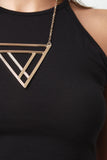 This sleeveless jersey knit top features a cutaway front, racer back, round neckline, and crop hemline. Accessories sold separately. Made in U.S.A. 95% Cotton, 5% Spandex.