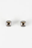 Vintage-inspired earrings that feature a textured square frame, rounded corners, and contrast color glossy center. Finished with a clip post back.