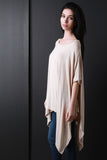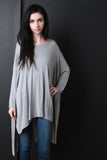 This oversized top features soft jersey knit, scoop neckline, long dolman sleeves, side slits, and high-low hemline. Accessories sold separately. Made in U.S.A. 93% Rayon, 7% Spandex.