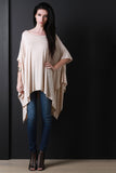 This oversized top features soft jersey knit, round neckline, short dolman sleeves, and handkerchief hemline. Accessories sold separately. Made in U.S.A. 97% Rayon, 3% Spandex.