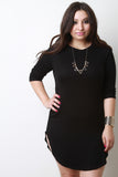 Ribbed Knit Quarter Sleeve Tunic Dress
