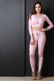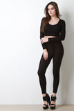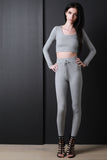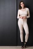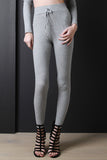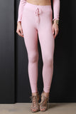 These tight leggings features thermal knit fabrication, wide elasticized waist with tie up accent, stretchy taper fit, and fully lined. Accessories sold separately. Made in U.S.A. 95% Rayon, 5% Spandex.