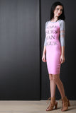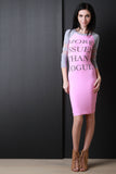 This jersey knit dress features a contrasting raglan sleeves with semi-sheer mesh panel accent, stretchy sculpture fit, and screen print front reading "More Issues Than Vogue". Made in U.S.A. Accessories sold separately. 95% Cotton, 5% Spandex.