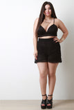 These high waist plus size  mesh shorts feature an elastic waistband, double layer with a solid under layer and a fishnet design fabric overlay. Accessories sold separately. Made in U.S.A. 100% Polyester. Contrast: 100% Cotton. Lining: 100% Polyester.