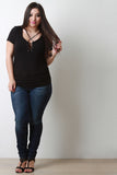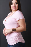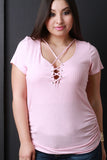 Side Cinched Corset Lace-Up Short Sleeves Top