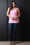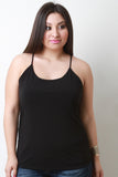 This pretty plus size tank features a round neckline, sleeveless design, spaghetti shoulder straps, and straight hemline. Partially lined. Accessories sold separately. Made in U.S.A. 90% Polyester, 10% Spandex.