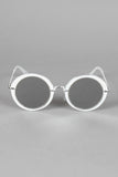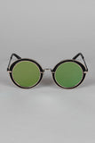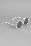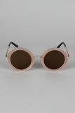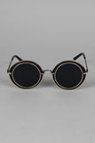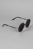 These sunglasses feature round frames, metallic trim, and thin nose bridge with cushions.