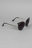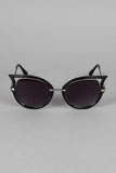 These  sunglasses  feature cat eye frames with cut out accents, aviator shaped lenses, and nose bridge with cushions.