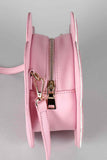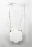 This lovely  bag  features a daisy-shaped silhouette, stitching detail on a long edge of face, top zip closure, and removable, adjustable vegan leather shoulder strap (23.5" drop).