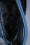 This stylish tote bag features faux suede, braided trim, tassel accents, and top zipper closure. Interior features pockets and floral lining. Bag is finished with removable adjustable shoulder strap (18" drop) and top handle (5.5" drop).