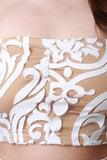 This top features off-the-shoulder neckline, short sleeves, semi-sheer fabrication overlay, and solid nude under layer. Finished with a crop hemline. Accessories sold separately. Made in U.S.A. 60% Polyester, 40% Nylon.