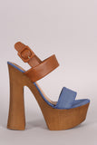 Bamboo Denim Print Slingback Chunky Platform Spool Heel