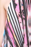 This gorgeous maxi dress features a high neck design with strappy racer back construction, mix media print throughout, deep front slit, and maxi-length hem. Partially lined. Accessories sold separately. Self: 100% Polyester. Lining: 100% Polyester.