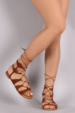 Bamboo Lace Up Ankle Gladiator Flat Sandals
