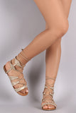 Bamboo Metallic Lace Up Ankle Gladiator Flat Sandals