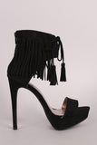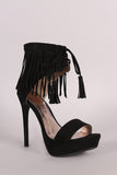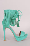 Qupid Suede Lace Up Fringe Cuff Stiletto Platform Heel