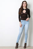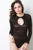 This bodysuit features a semi-sheer mesh fabrication, mock neckline, keyhole in chest area, long sleeves and double snap button closure at crotch. Accessories sold separately. Made in U.S.A. 68% Rayon, 32% Spandex.