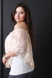 Semi-Sheer Lace Off The Shoulder Necklace Top